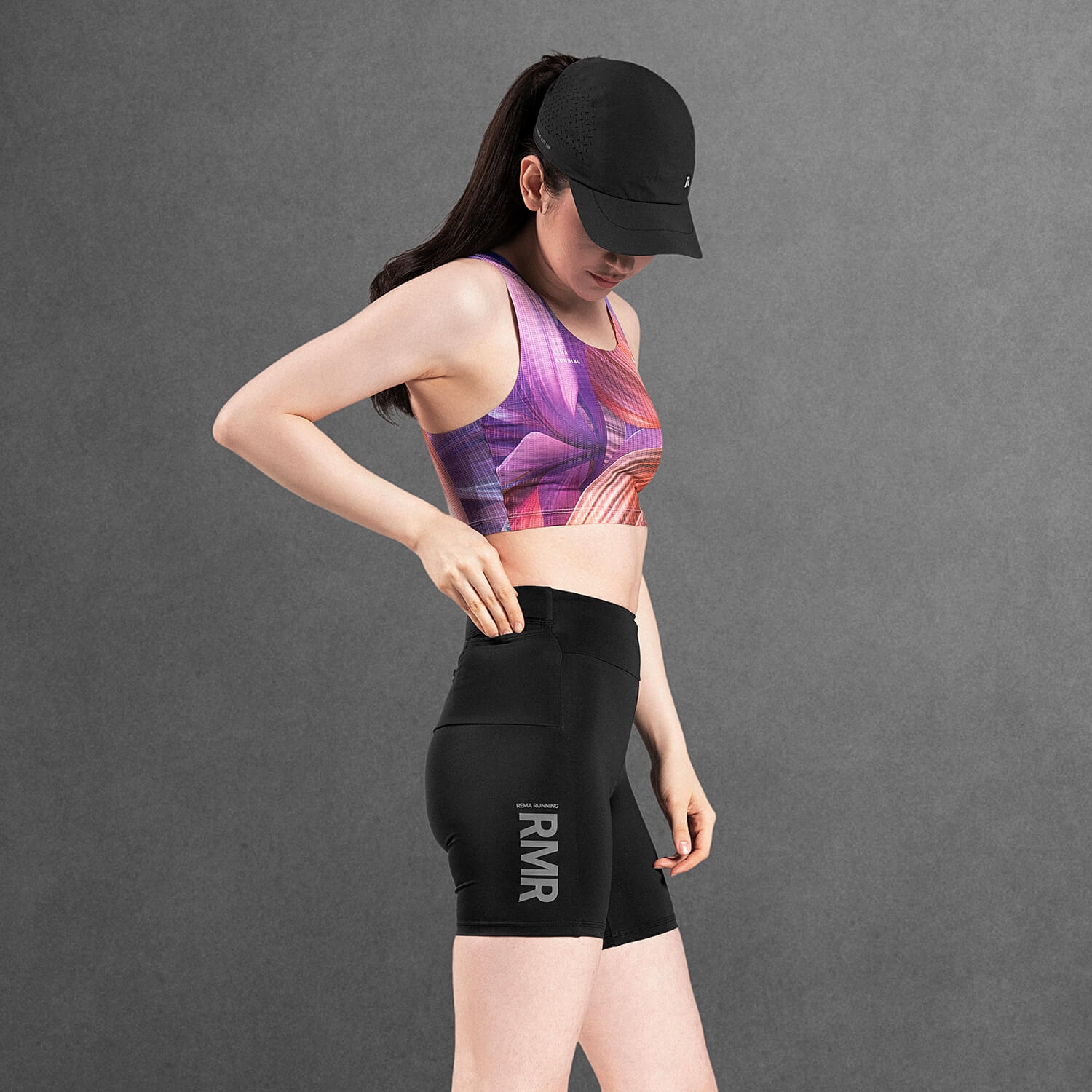 肩背開放式剪裁釋放上身活動範圍,降低肩部束縛;短版版型貼合核心區域,減少跑動時的布料晃動。固定下襬設計則幫助衣身在配速提升時維持定位,不易上移。