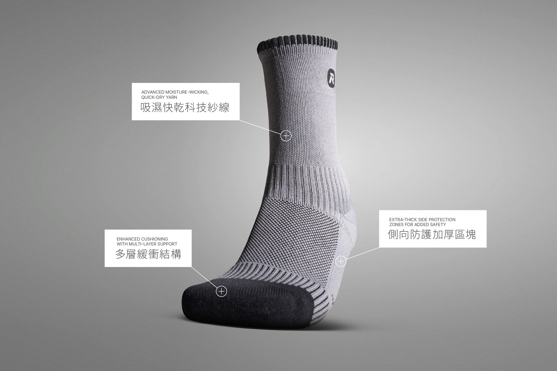 相較一般運動襪,網球襪必須兼顧動態防護與穩定支撐,我們參考諸多國際品牌的結構設計原則,打造出更符合亞洲足型的版本。SideShield 系列不僅適合網球,也適合羽球、壁球等高速側向運動,是訓練與比賽的絕佳選擇。
